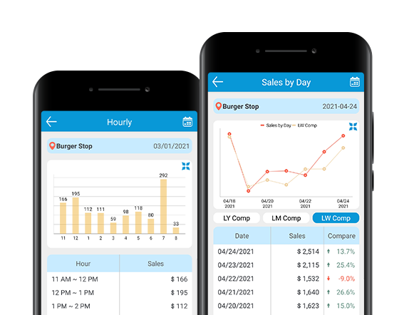 View and analyze store transactions in real-time and from anywhere with your smartphone.